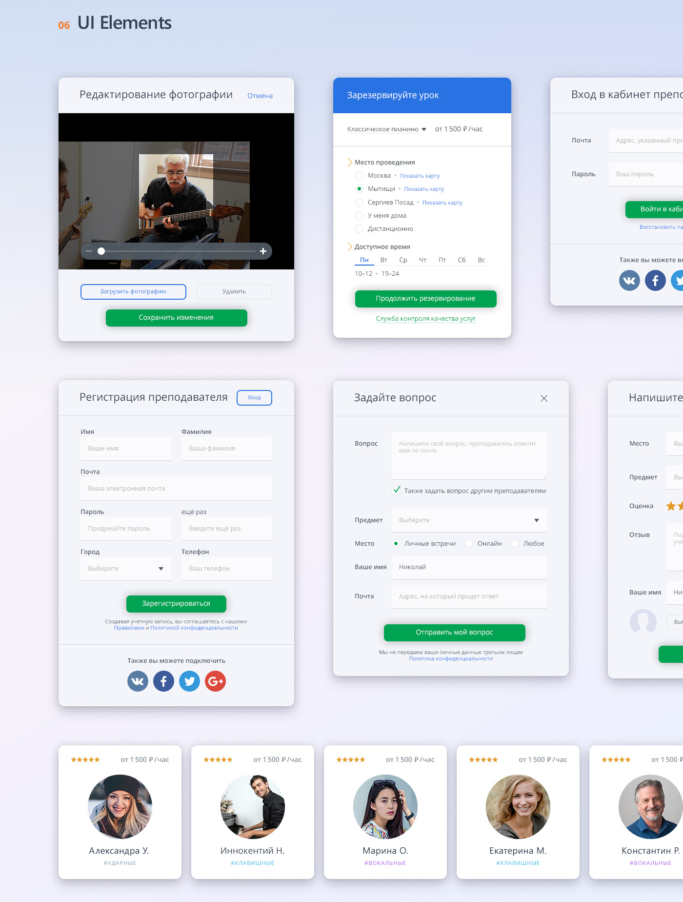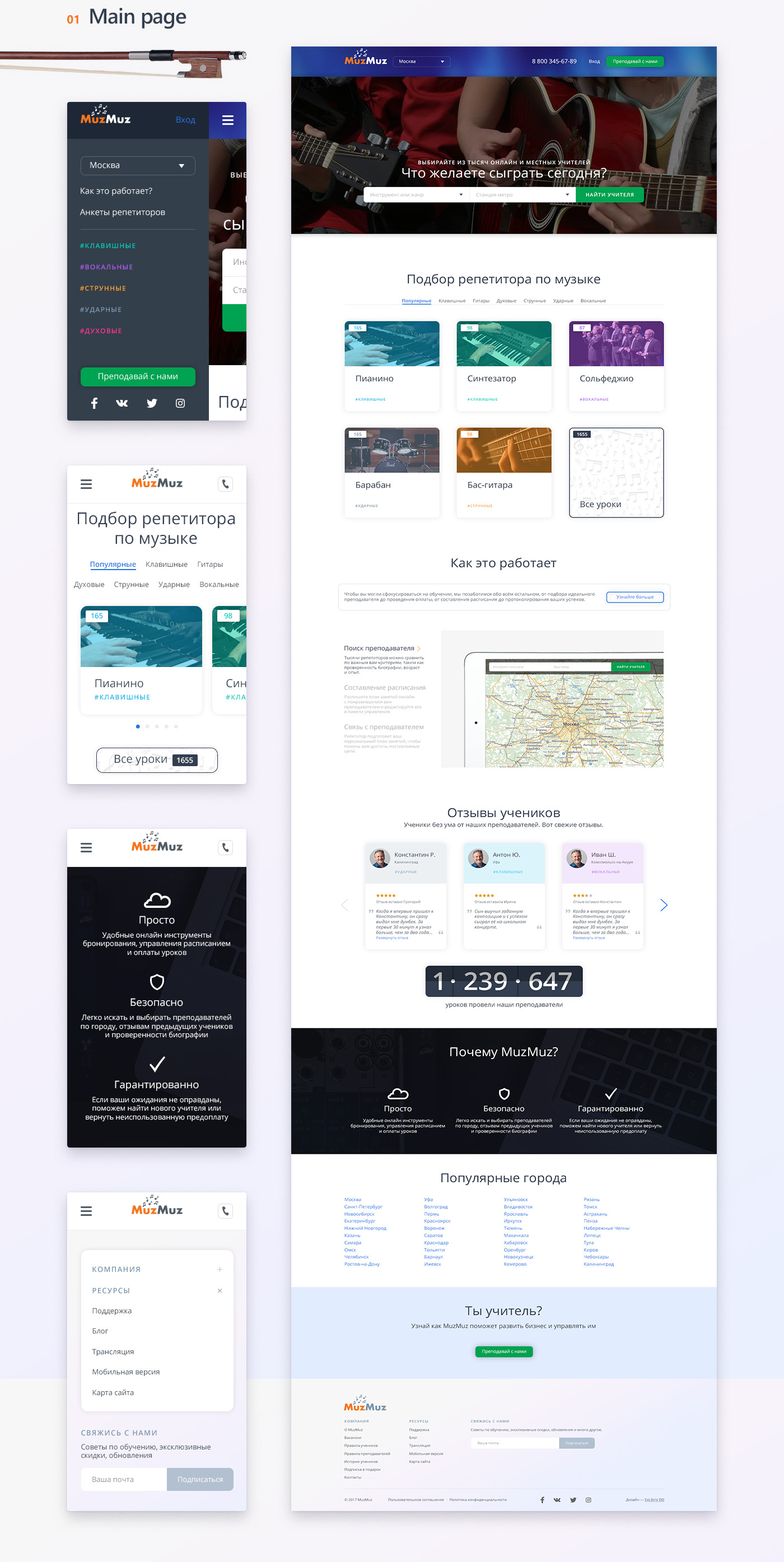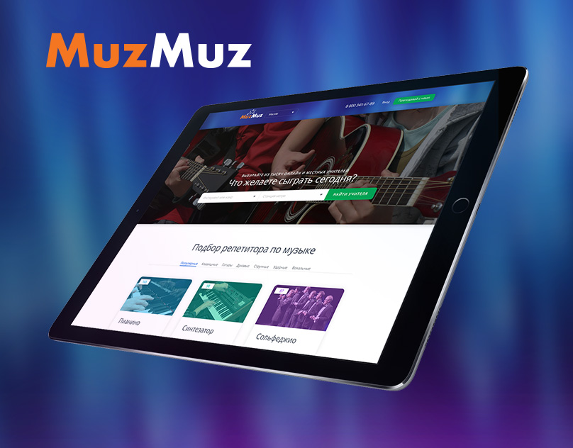 Дизайн сайта сервиса по подбору преподавателей музыки.