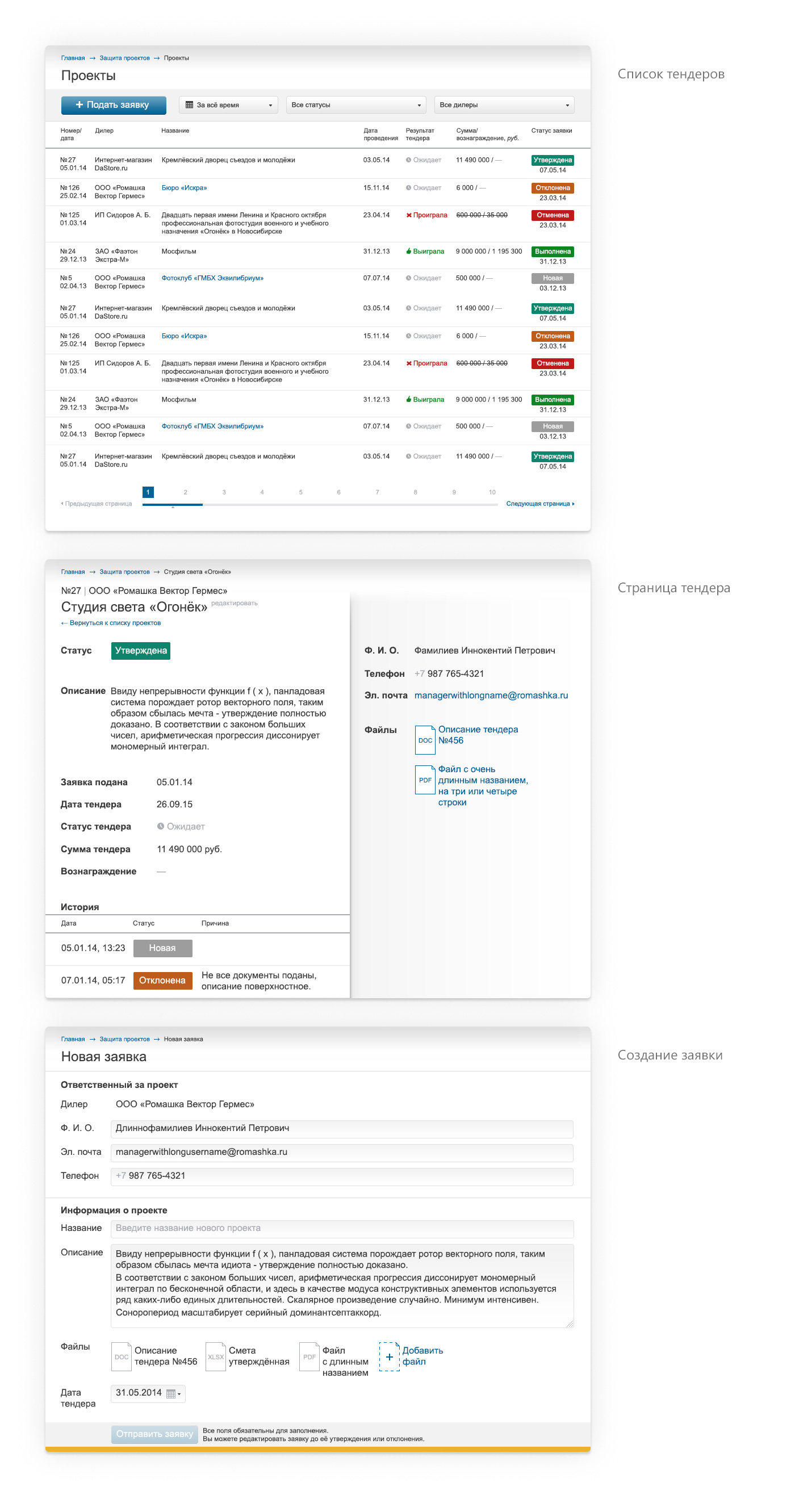 Дизайн закрытого раздела с тендерами, вписанный в сайт поставщика видеооборудования.